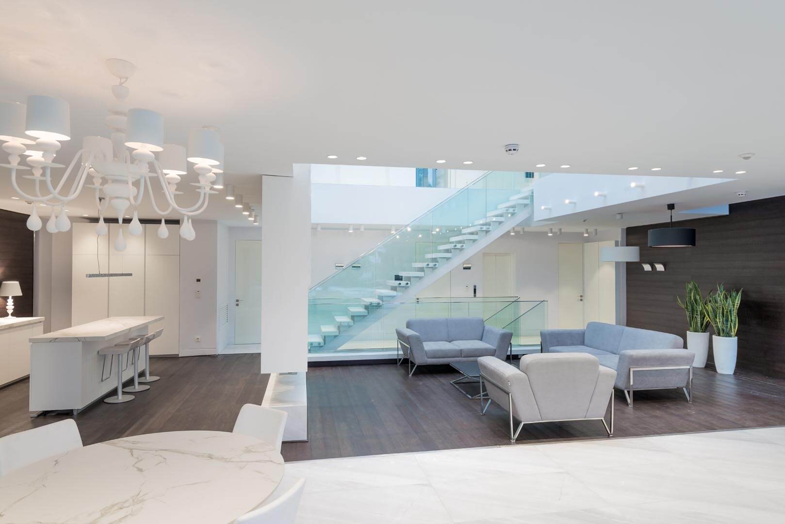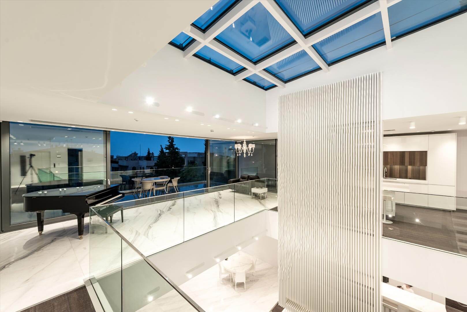 در طبقه آخر بنا و در قسمت مرکزی سقف شیشهای منحصر به فردی تعبیه شده که نور را از طریق نورگیر موجود در طبقه همکف در سرتاسر خانه منتشر میکند. به این ترتیب نور دلچسبی تمام فضای داخلی خانه را در طول روز پر میکند تا ساکنانش به روشن کردن چراغهای خانه در طول روز نیازی نداشته باشند. صرفهجویی در مصرف انرژی از همین اتفاقات هوشمندانه ریشه میگیرد.