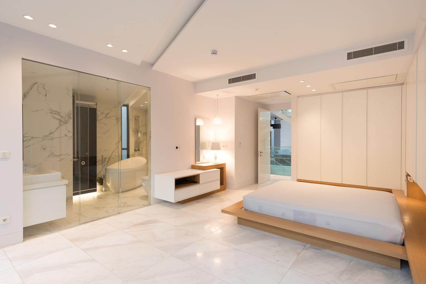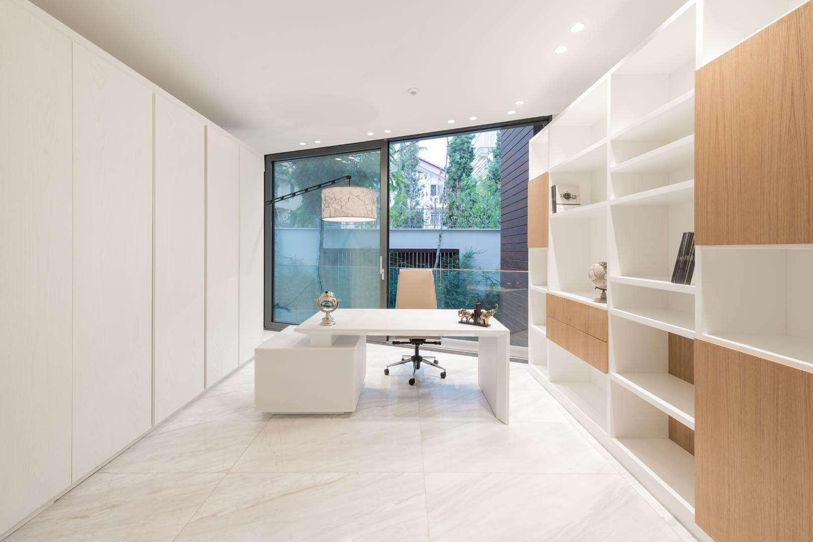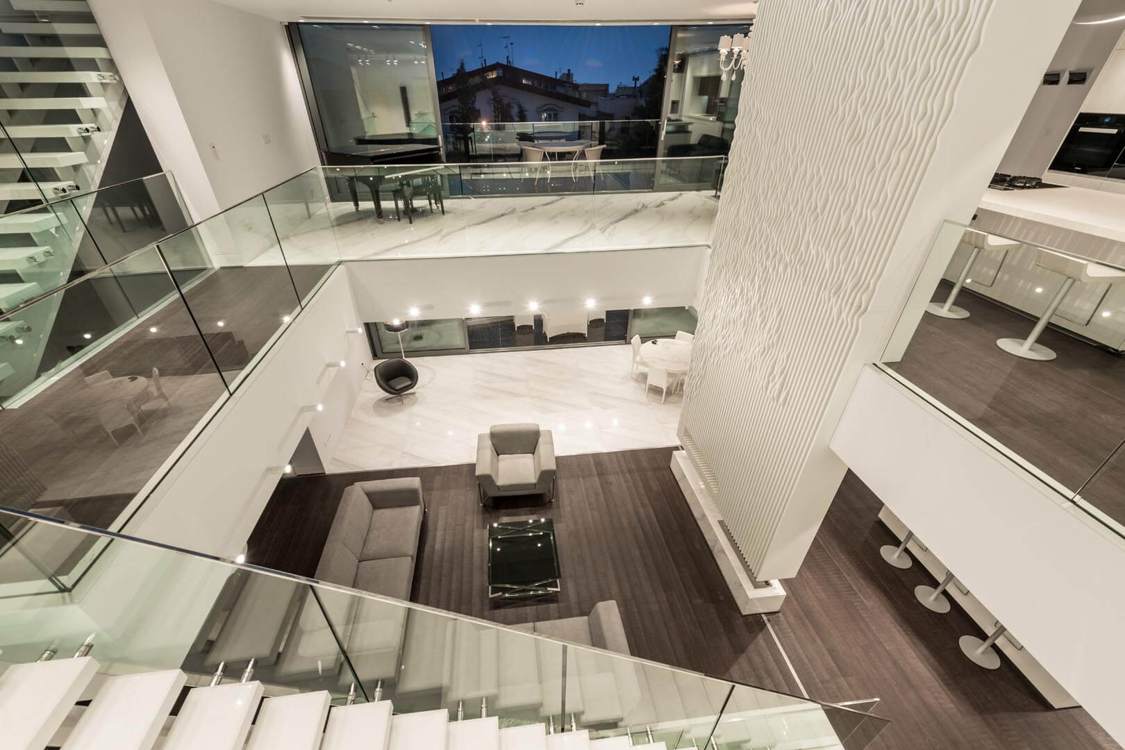 دهانههای باز سازه نیز این امکان را فراهم آوردهاند که جدارههای شیشهای بزرگ و بازی را در نمای جنوبی داشته باشیم؛ جایی که فضای درون و بیرون با هم پیوند میخورند. به این ترتیب در تراس بنا تجربه شیرین فضای شش متری بدون شیشه و فریمی شکل میگیرد که در نوع خود کمنظیر است.